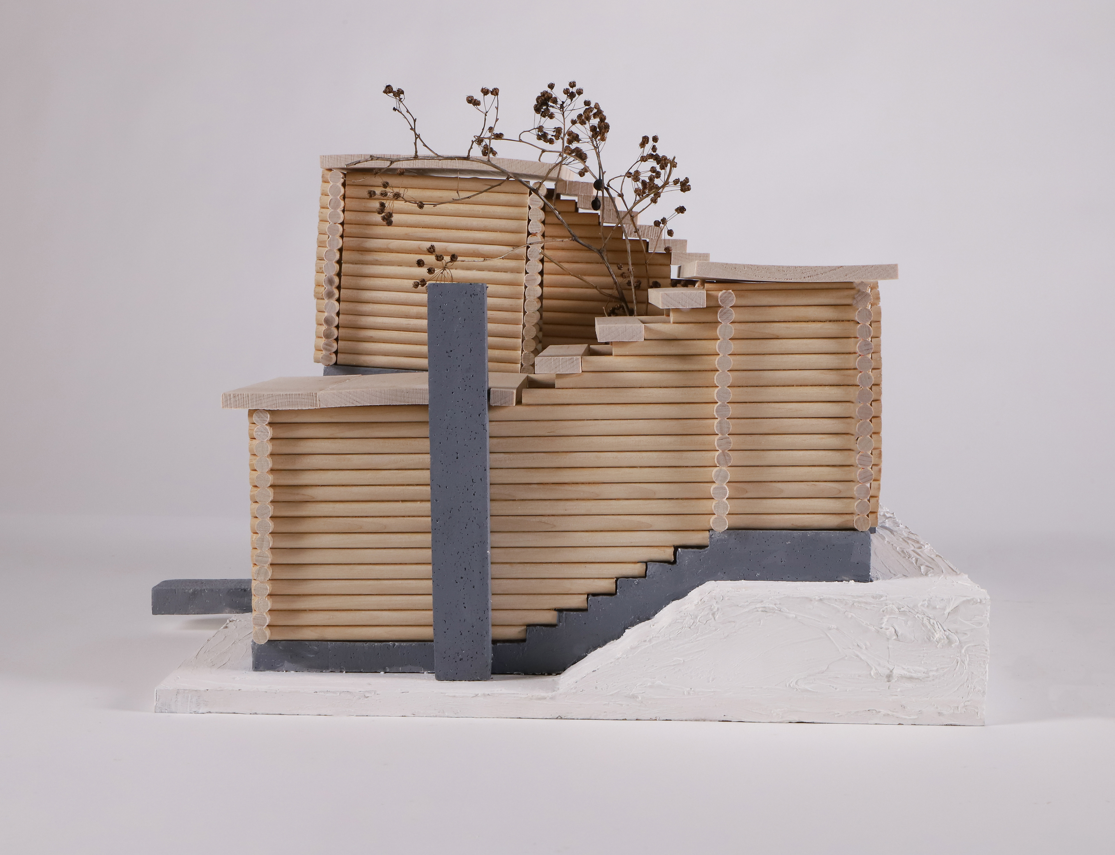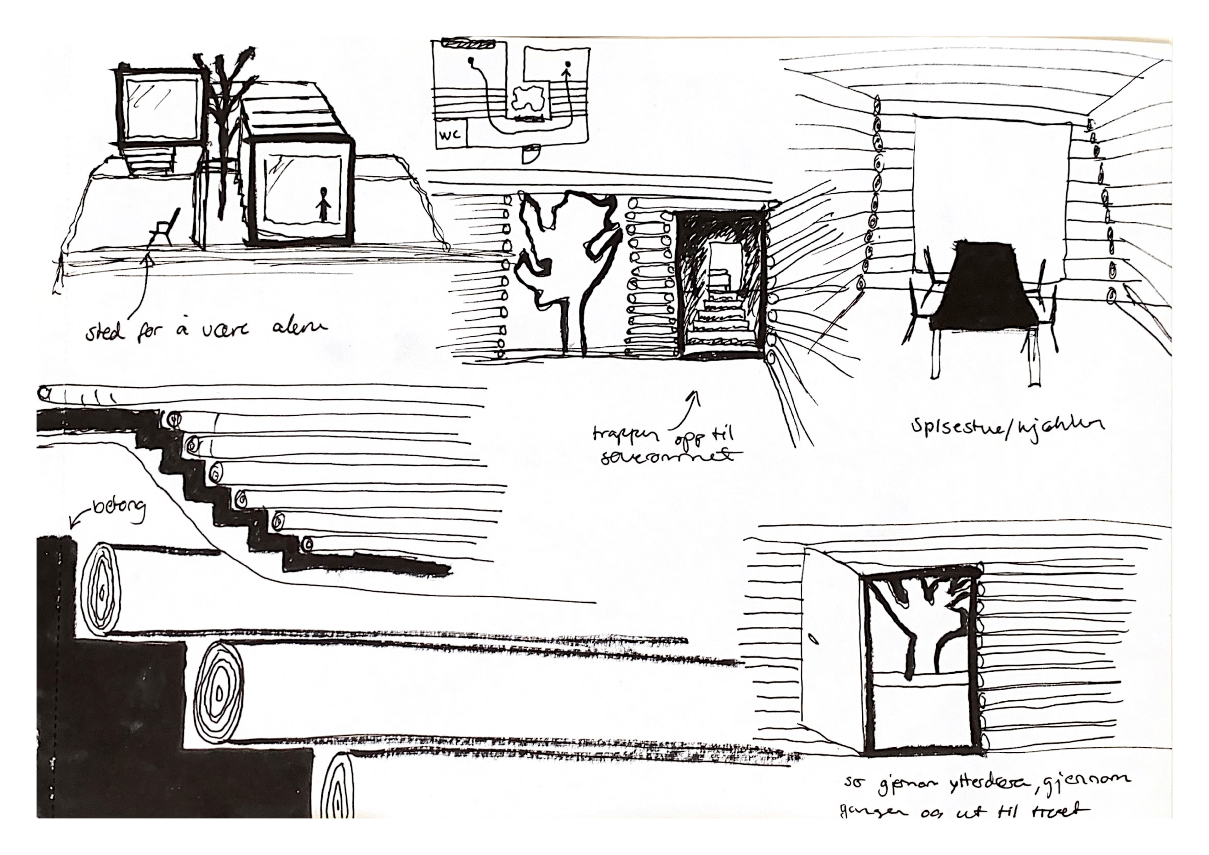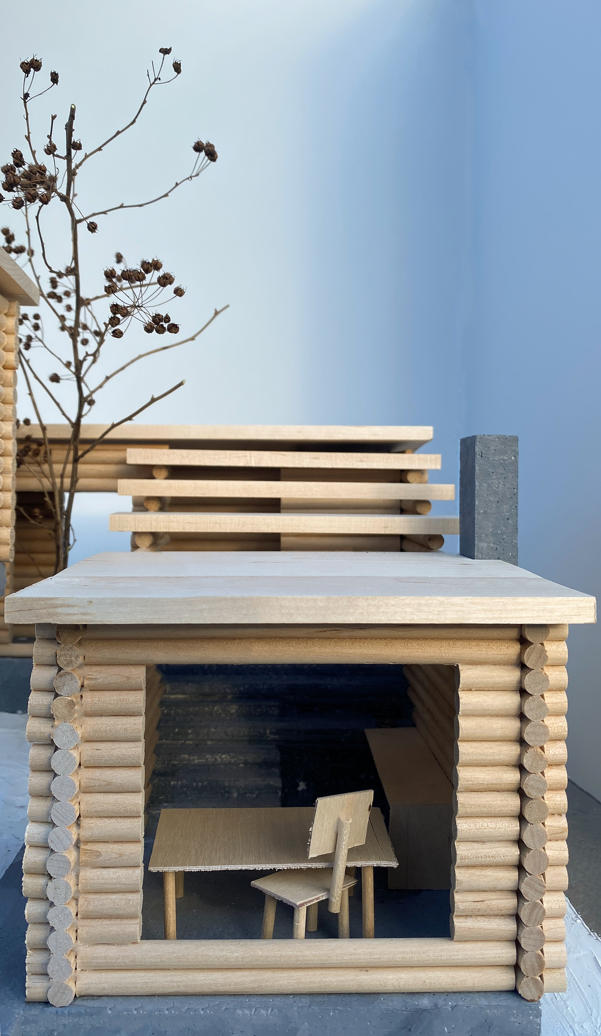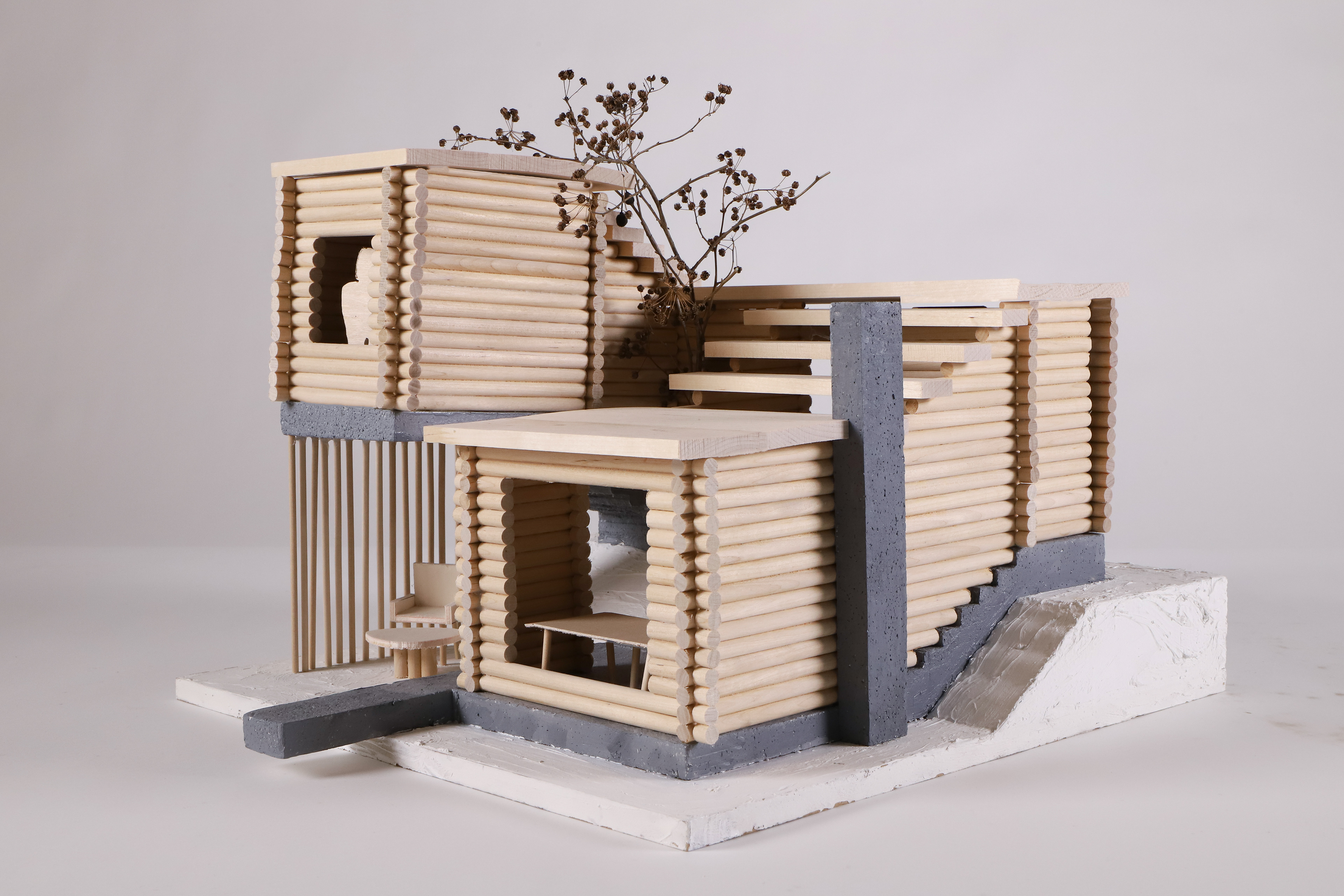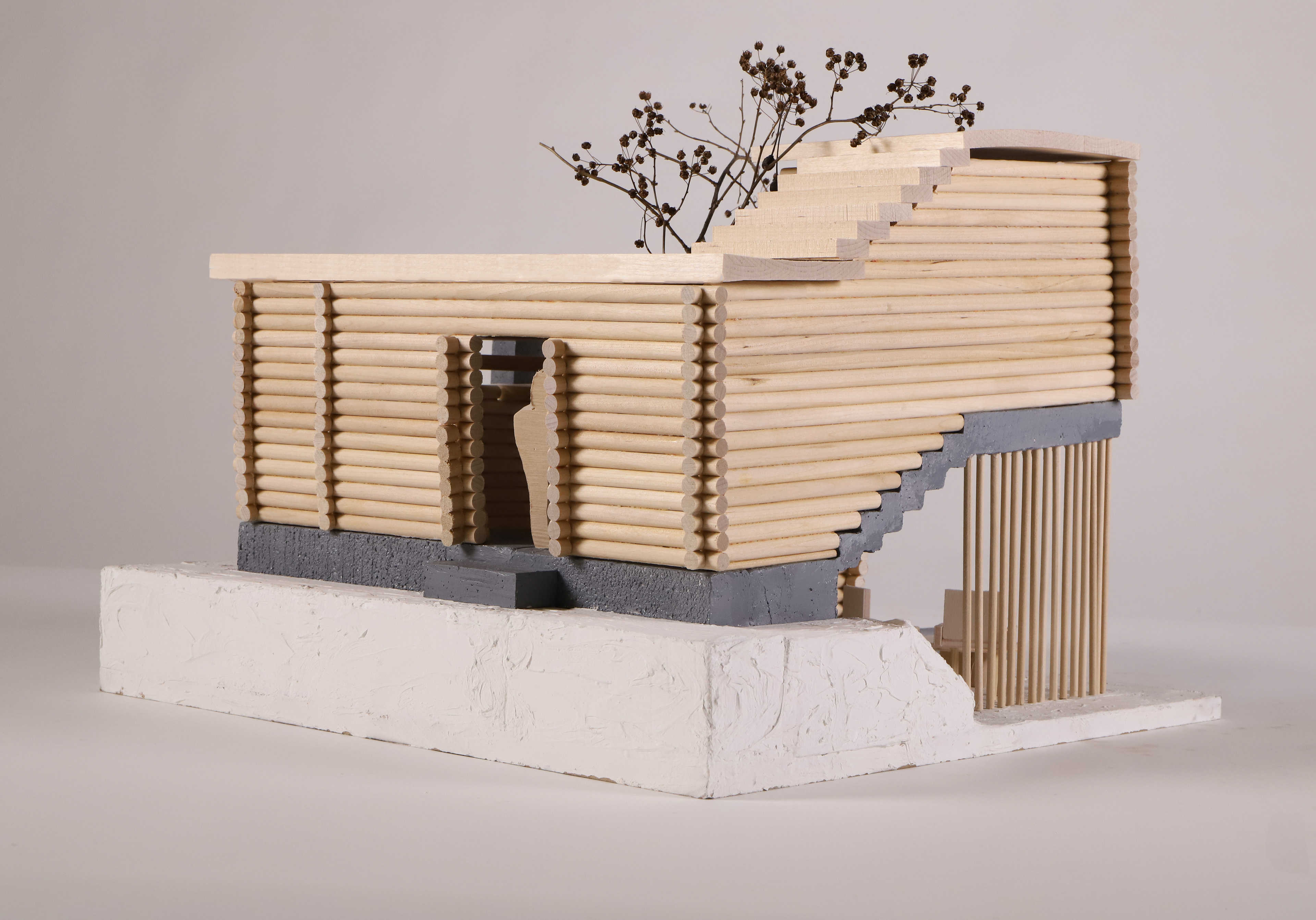Jeg ønsket å utfordre konstruksjonsprinsippet lafting og se hvilke muligheter som ligger i laftestokkene. Resultatet ble en bolig som tilsynelatende jobber i mot laftens naturlige form, men som egentlig gjør det.