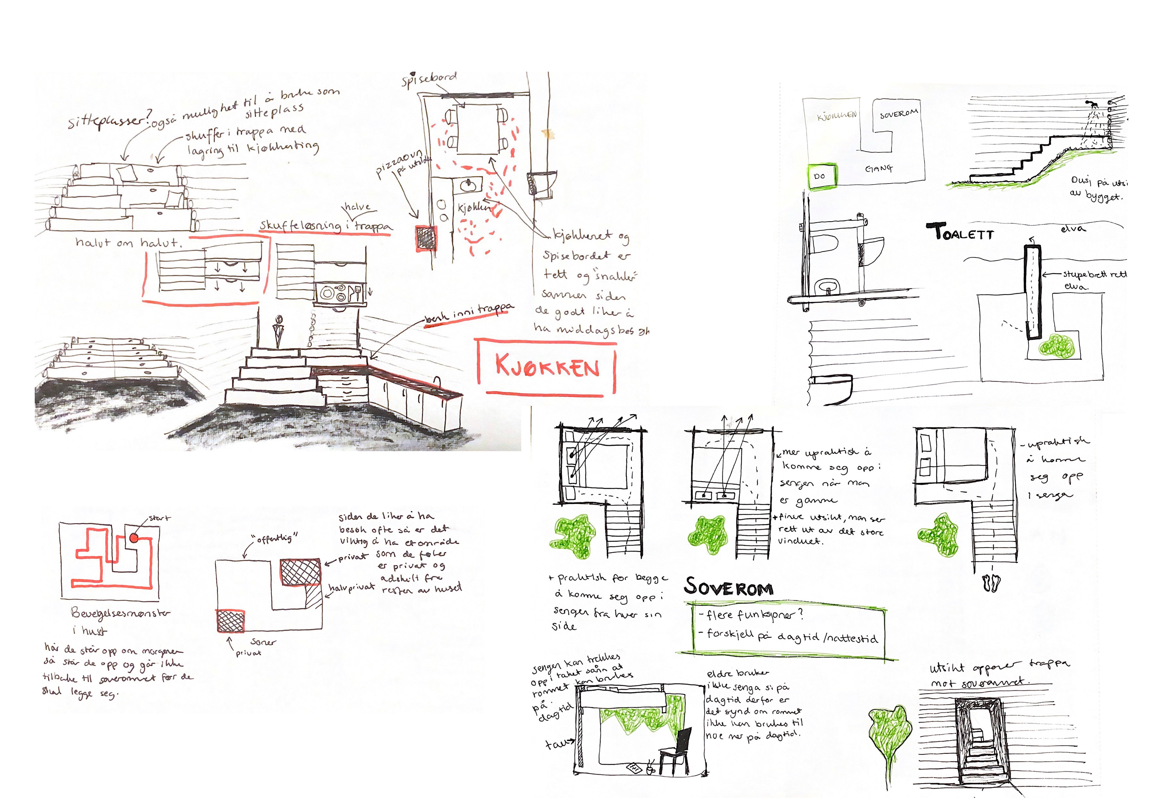 Oppgaven: Vi ble tildelt en tomt, beboere og et konstruksjonsprinsipp. Vi fikk i oppgave å bygge en bolig for minst to personer. Byggemassen skulle holde seg innenfor 6x6x6 meter, mens tomten var 8x8x8 meter stor. Jeg ble tildelt konstruksjonsprinsipper lafting med ca. 300 laftestokker, tomten "elvebredde" og beboerne Paul og Eva som er pensjonerte tollere.