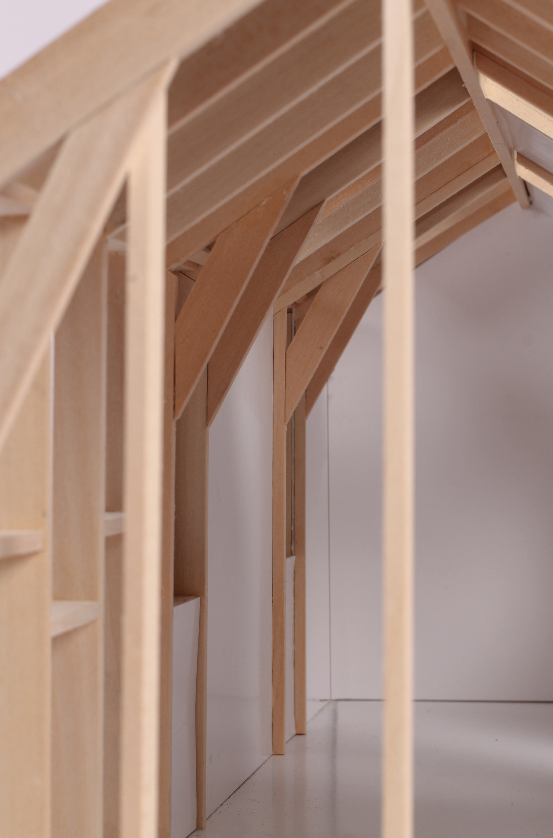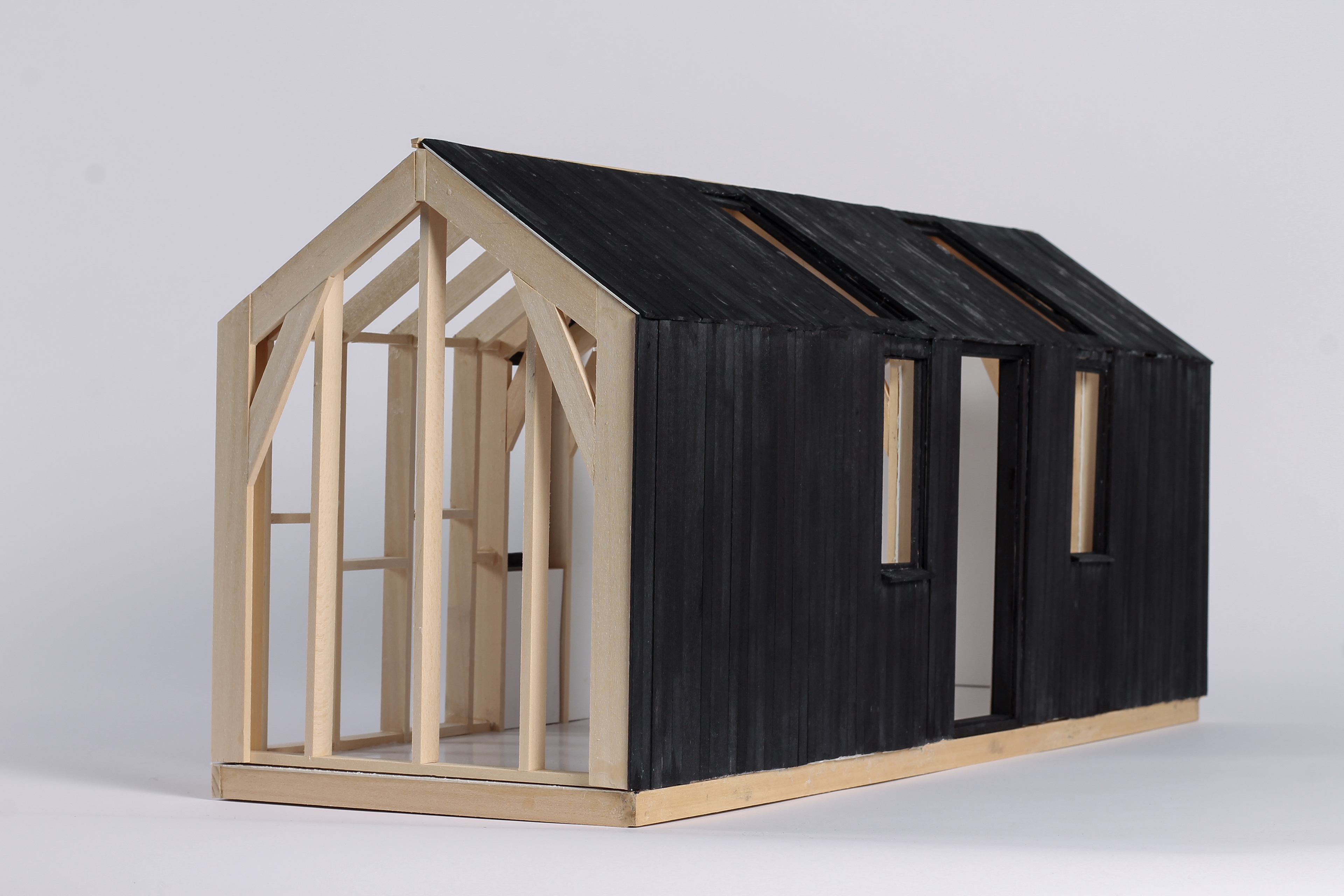 Oppgaven hadde fokus på bærekraft og gjenbruk. Derfor måtte vi planlegge byggets utforming ut ifra hvilke materialer som lå ute for salg på Finn.no. Alle vindusstørrelser og døråpninger i prosjektet er derfor hentet fra bruktannonser som lå ute for salg. Vi har planlagt alt fra både konstruksjon, interiør og eksteriør.