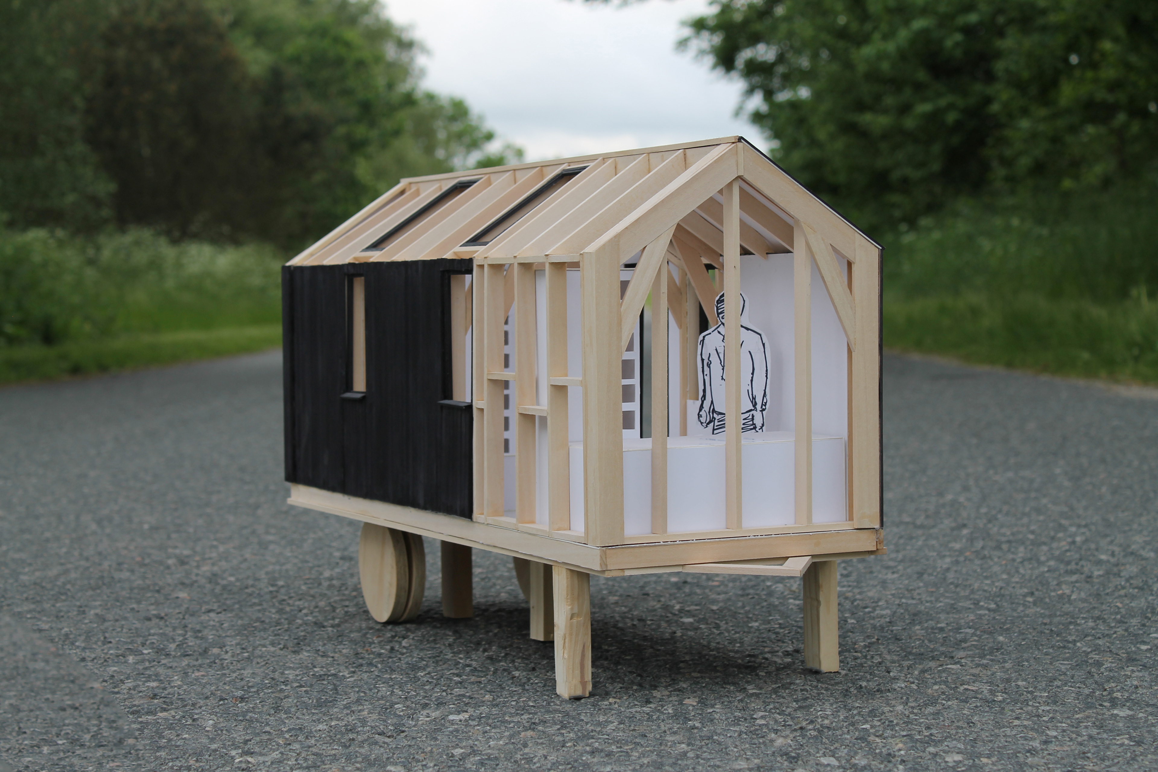 Oppgaven: Vi skulle vi designe et tinyhouse, også kalt mikrohus, som skulle huse 2 studenter. Det var krav om at det skulle være mobilt og holde seg innenfor størrelsesbegrensningen på 2m x 6m.